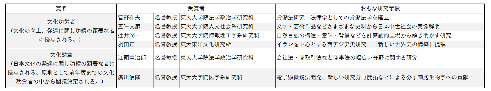今年も多くの東大の研究者が、研究成果や長年の功績を認められさまざまな賞を受賞した。受賞者全員を詳しく紹介することは紙幅の都合上かなわないため、日本学士院賞を授与された5人と紫綬褒章を受章した7人を中心に、その研究や業績を紹介する。(構成・山口智優)