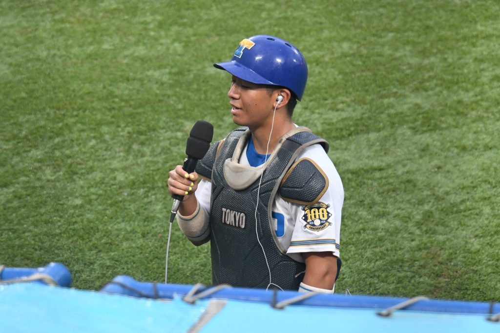 この試合の第1打席で安打を放ち、それが今シーズン初安打でした。第2打席でもこのように良い結果が出て安心したというのはあります。やはり、杉浦選手が早大1回戦でホームランを放っていて、そのまま出続けていればキャッチャーとしてもっと打っていたのではと思っていたので、自分が出ていることでマイナスになっているという不安がありました。「杉浦選手に代わって自分が出ている意味が初めて出たな」と感じたことによる安心感だったと思います。