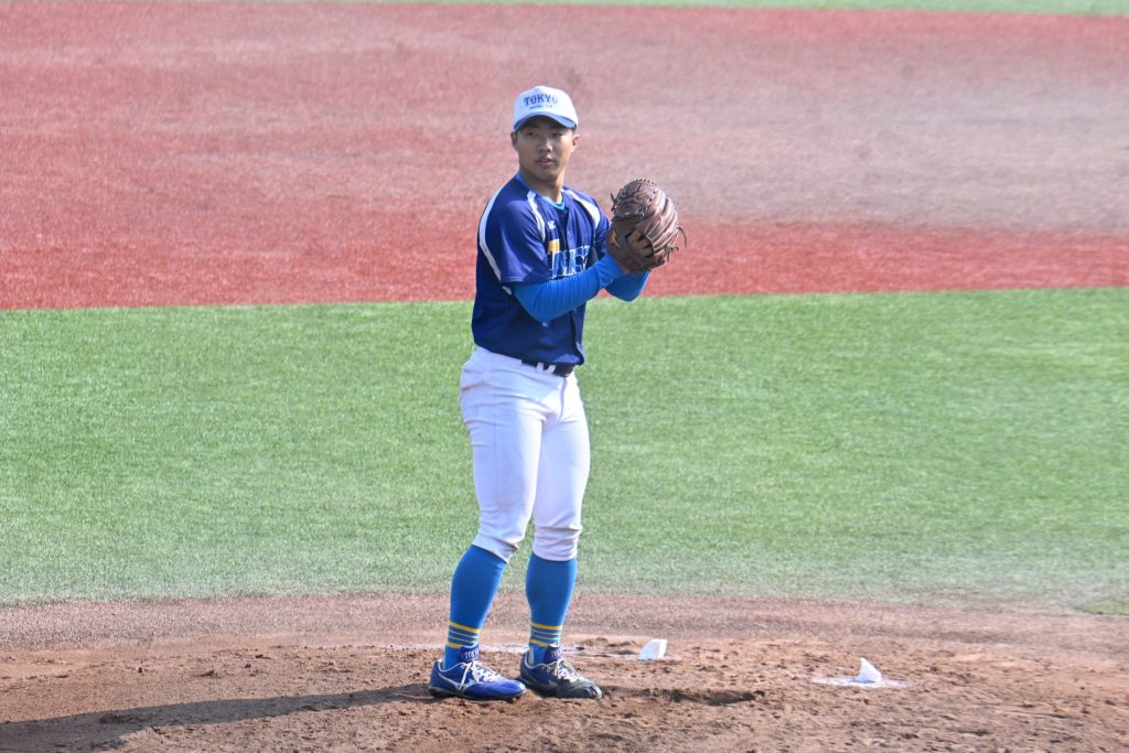 続く6回裏は中根慎士郎(文Ⅰ・1年)がマウンドへ。先頭打者に安打を許したが、続く打者を4-6-3の併殺打に打ち取り無失点で抑えた。池田と同じく昨秋にリーグ戦初登板を経験。コントロールを武器に来季も投手陣の一角を担う。