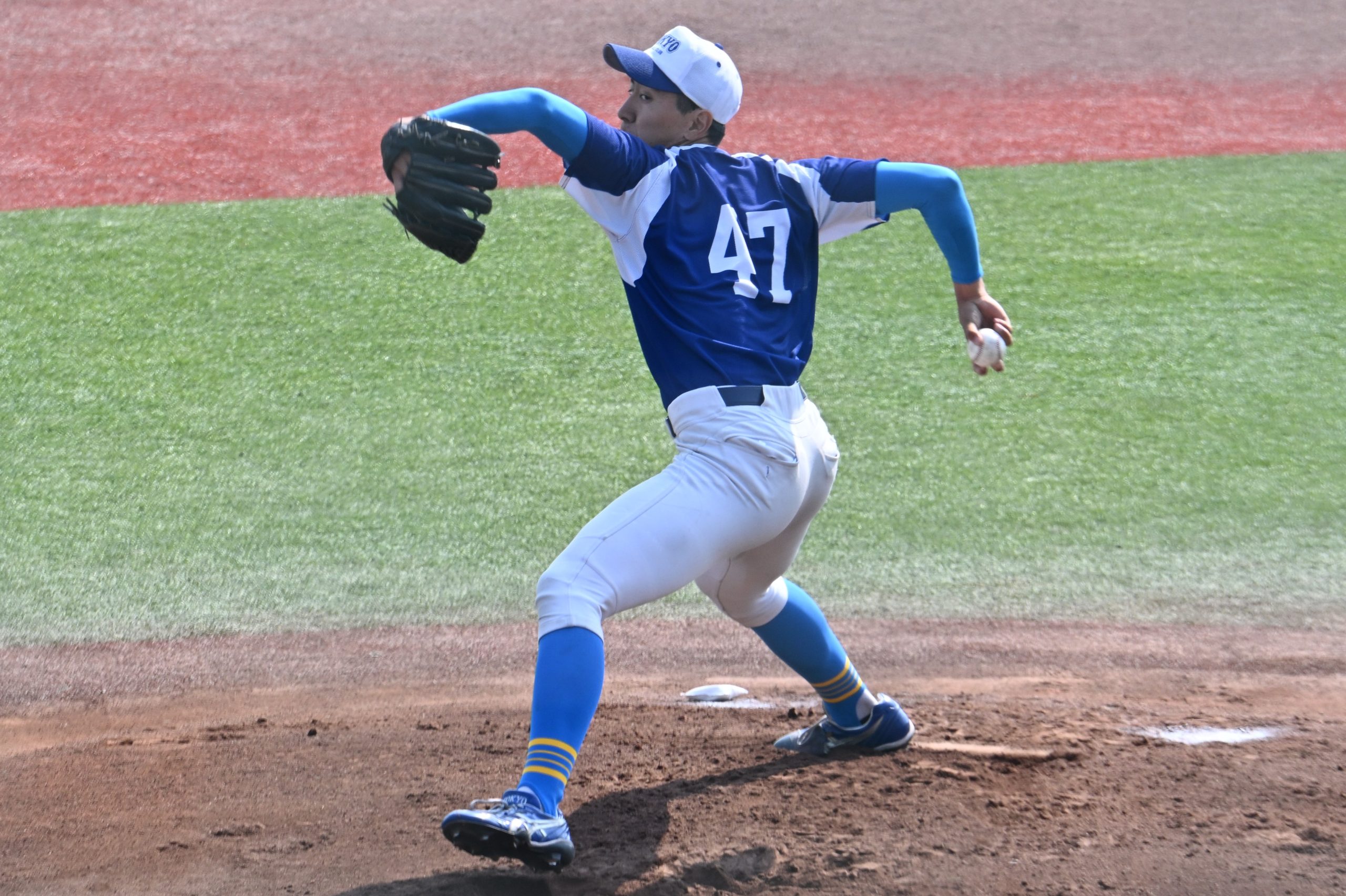 続く6回裏は中根慎士郎(文Ⅰ・1年)がマウンドへ。先頭打者に安打を許したが、続く打者を4-6-3の併殺打に打ち取り無失点で抑えた。池田と同じく昨秋にリーグ戦初登板を経験。コントロールを武器に来季も投手陣の一角を担う。