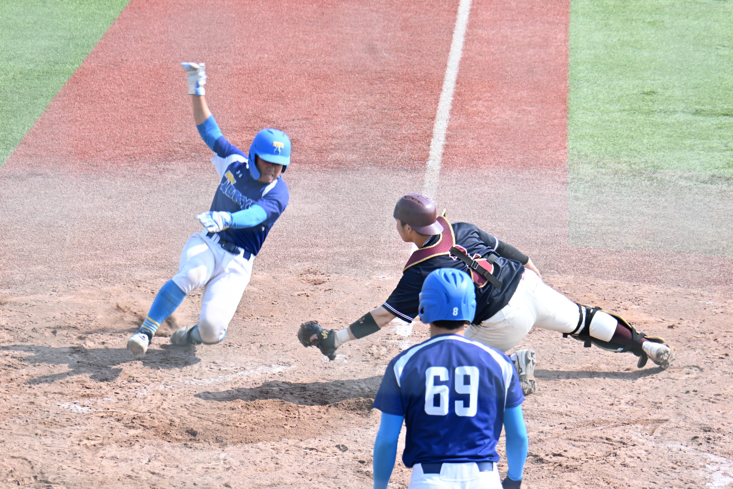 試合が動いたのは2回表、1死から5番・秋元諒(文Ⅰ・2年)、7番・樋口航介(理Ⅰ・2年)の安打で2死一、三塁のチャンスを作る。続く8番・小村旺輔(経・3年)の打席で、一塁走者・樋口が飛び出す。樋口が挟まれる間に三塁走者・秋元が生還し、樋口もセーフに。東大野球部の新年初得点はダブルスチールとなった。