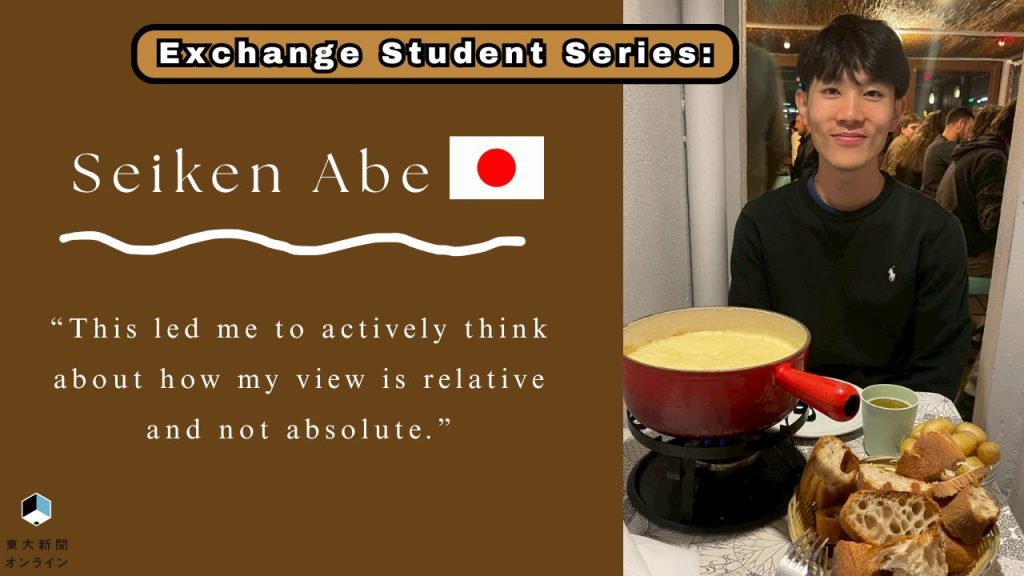Participating in an exchange can be a career-enriching opportunity, greatly shaped by the host city’s characteristics. To explore this particular aspect of academic exchanges, the Todai Shimbun interviewed Seiken Abe, a fourth-year University of Tokyo student studying International Relations. He is currently studying at the University of Geneva and will be there for a full academic year, as of autumn 2025.