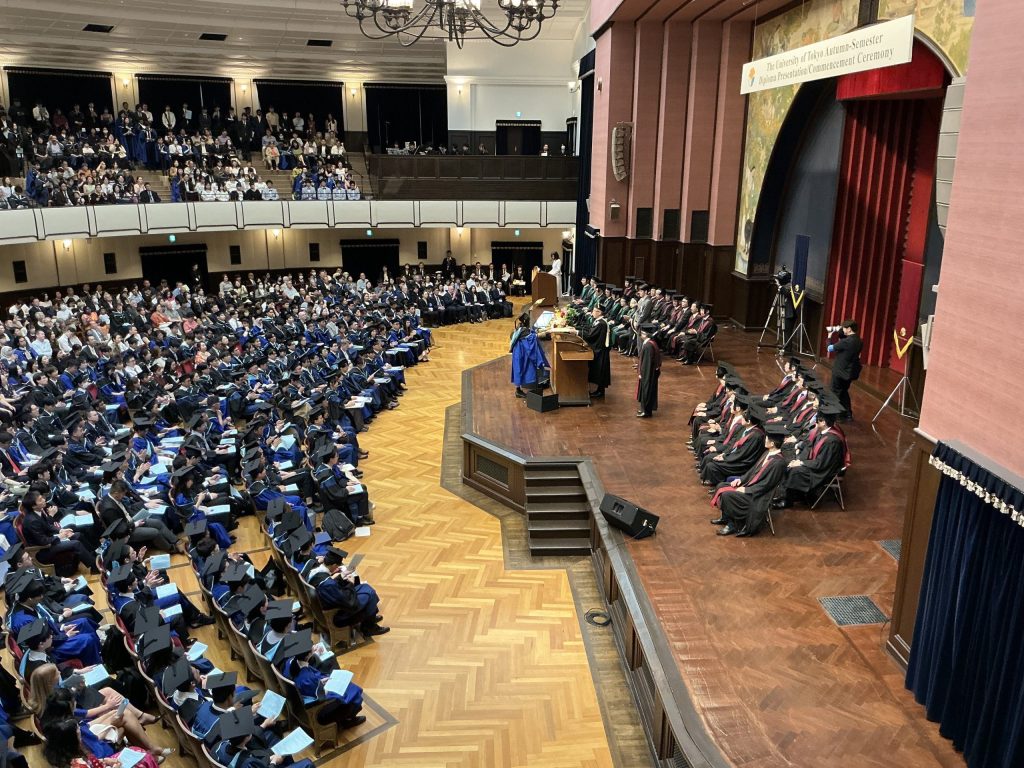 The 2025 University of Tokyo Fall Graduation Ceremony, held on September 19th at Yasuda Auditorium, was conducted for graduate and undergraduate students who completed their studies between April and September. The ceremony took place in English, with a live broadcast available online.