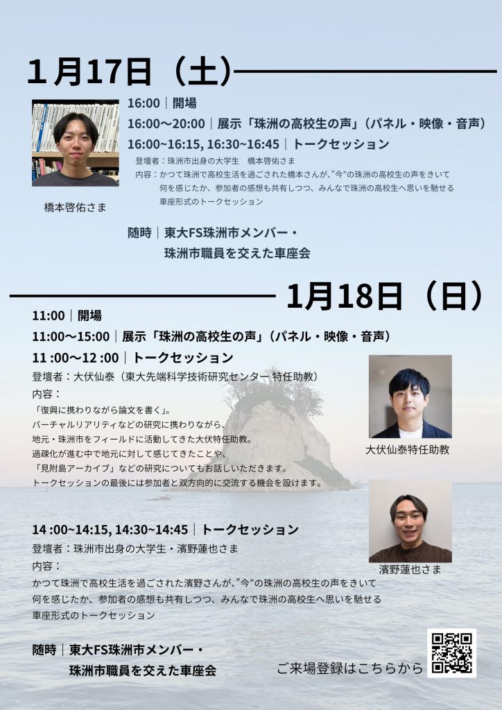 ・16:00~20:00(イベント終了時間まで):展示「珠洲の高校生の声」(パネル・映像・音声)