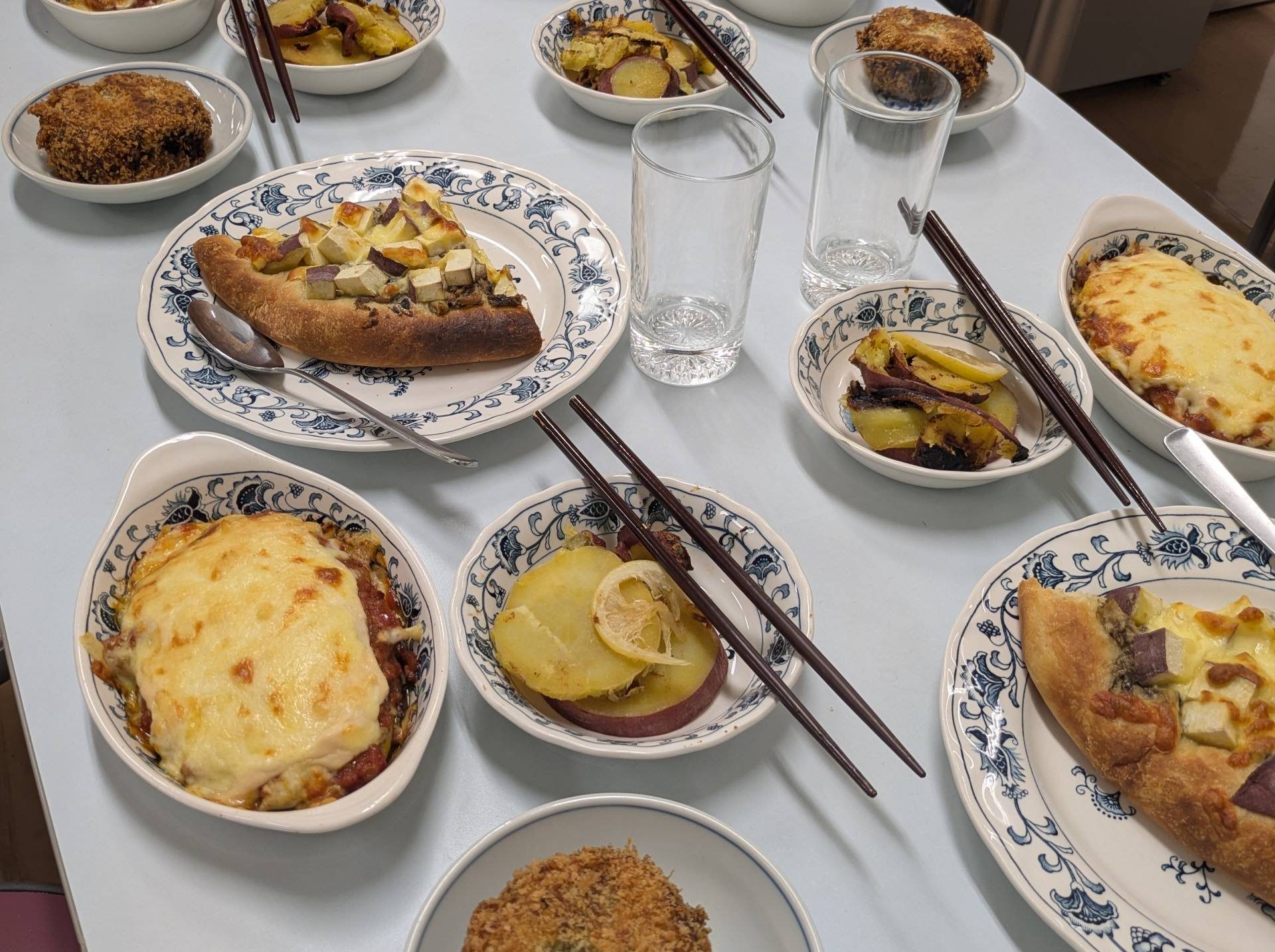 おすすめの食べ方も多彩だ。基本のさつまいもご飯は、切って炊くだけの簡単レシピながらさつまいもを味わうことができる。また、サツマイモを使った野菜炒めは、カレーやコンソメで味付けすることで意外な相性を楽しめる。他にも、「カリーガー」と呼ばれるベトナム風カレーの中に取り入れるなど、おかずとして柔軟に活用できる。参加した学生たちは、味や食感の工夫を考えながら、イモの魅力を体験的に学んでいる。喰らう会では、収穫したイモをみんなで調理し、食べ比べを行ったり品種ごとの味の違いを議論したりすることもある。こうした活動を通じて、参加する学生自身が調理法や味の工夫を楽しみながら学んでいる。試作段階では、味見や見た目の調整を繰り返し、他のメンバーから意見をもらいながら改良を重ねる。こうしたプロセスが、学生同士のコミュニケーションや創意工夫の力を育む。