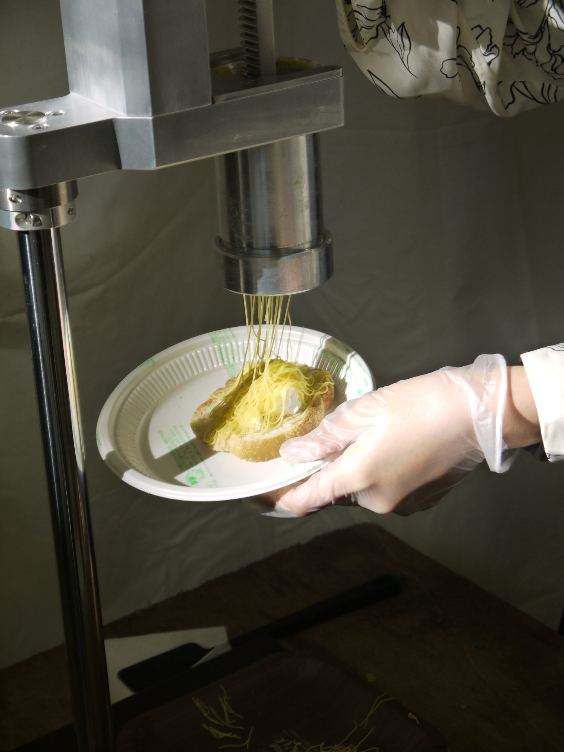 フランス語で「白い山」を意味するモンブランを、ドイツ語選択の文Ⅲ15組(23年度入学)が「越境」する形で提供する。企画名は教養学部が掲げる「越境する知性」をオマージュしたもの。3回の試作会でバゲットを切り分ける際の適切な厚みとサイズを探ったと振り返る。秋を感じさせる栗の黄色にオレオの黒がアクセントとなり、仕上げに乗せられた銀色のアラザンはまるできらめく雪のよう。ビジュアルへのこだわりも垣間見えた。