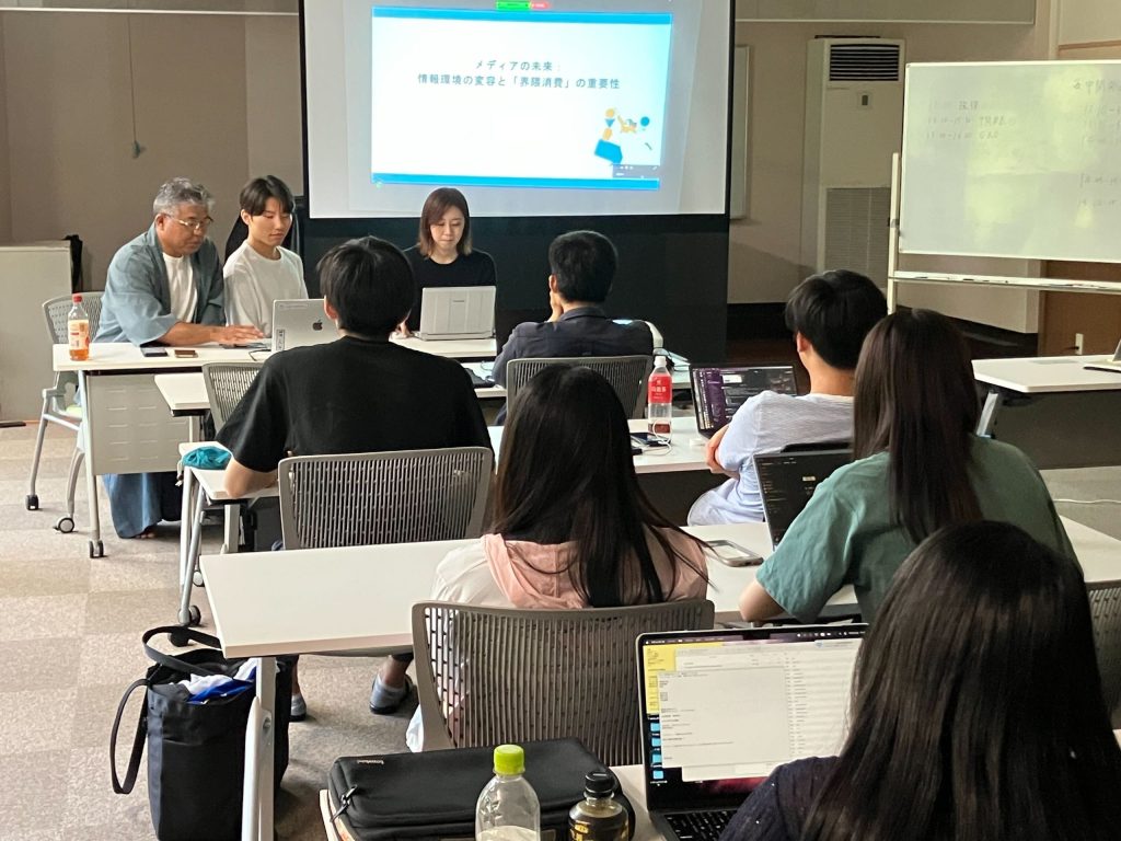 授業は少人数制がほとんど。教育部の研究生(教育部に所属する学生は研究生、と呼ばれる)同士の意見交換は自分の視野が広がるチャンスだ。年代も、これまでのバックグラウンドも異なる研究生同士のディスカッションはとても新鮮で授業も盛り上がるポイント。また、講師との一期一会の出会いもかけがえのない経験だ。「メディア・ジャーナリズム論講義Ⅰ」では大手新聞社で長年記者を勤めてきた方を講師に招き、ジャーナリズムの基礎を習う。授業では良い記事とは何か、を話し合ったりどの新聞が書いた記事か、などを多角的な視点をもとに考える時間も。長年の経験ならではの取材時の緊迫感あふれる話や、SNS時代における新聞の役割についても考えさせられる。そのほかにも最先端のテクノロジーなどのアイデアを形にして情報学環の大学院生と制作展を作り上げる授業や、「アイドル論」と題し、現代社会の労働や教育、文化などについてさまざまな視点から考察し、現役のアイドルをゲストに招いたり、実際にアイドルのライブイベントに足を運ぶというユニークな授業も存在する。