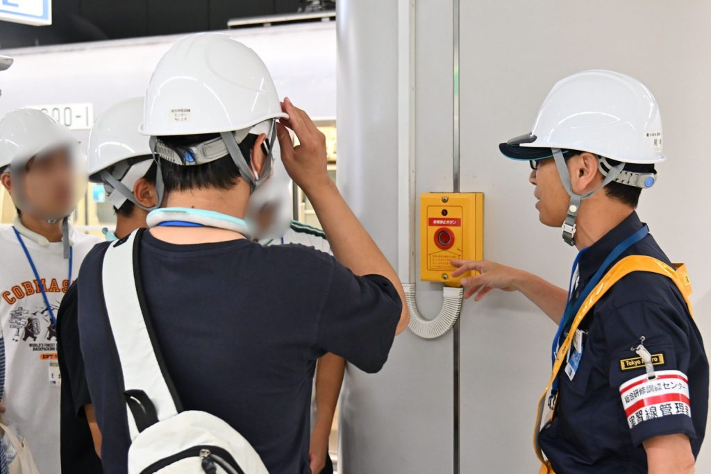 ダイヤ作成の後は、実習線見学へ移る。実習線は、社員の技能実習及び異常時の訓練などの目的で作られた模擬路線のこと。駅はほぼ実物を再現して作られているうえに、列車も営業運転で使用中の車両が訓練で使用されている。実際の駅を模した「センター中央駅」を見学し、営業駅とは一味違う雰囲気のホームを体験できるまたとない機会となった。訓練用の施設であるため、普段はできないことも体験できるのが嬉しいところ。社員の誘導のもと、参加者はグループに分かれて体験をしていく。