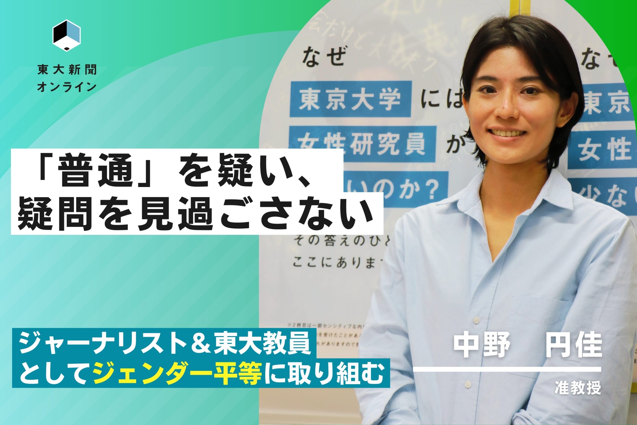 東大教育学部を卒業後、日本経済新聞社で記者になった中野准教授。結婚・妊娠を機に周囲の扱いが変化したことに疑問を持ち、ジェンダーを学び直そうと第1子の育休中に修士号を取得。2015年にフリージャーナリストに転じ、ジェンダーや子育てなどの問題を報じてきた。現在は東大の教員として、学内のジェンダー平等推進を担当する中野准教授に、自身のキャリアや既存の在り方を疑う問題意識、話題となった「#言葉の逆風」キャンペーンについて聞いた。(取材・松崎文香、撮影・五十嵐崇人)