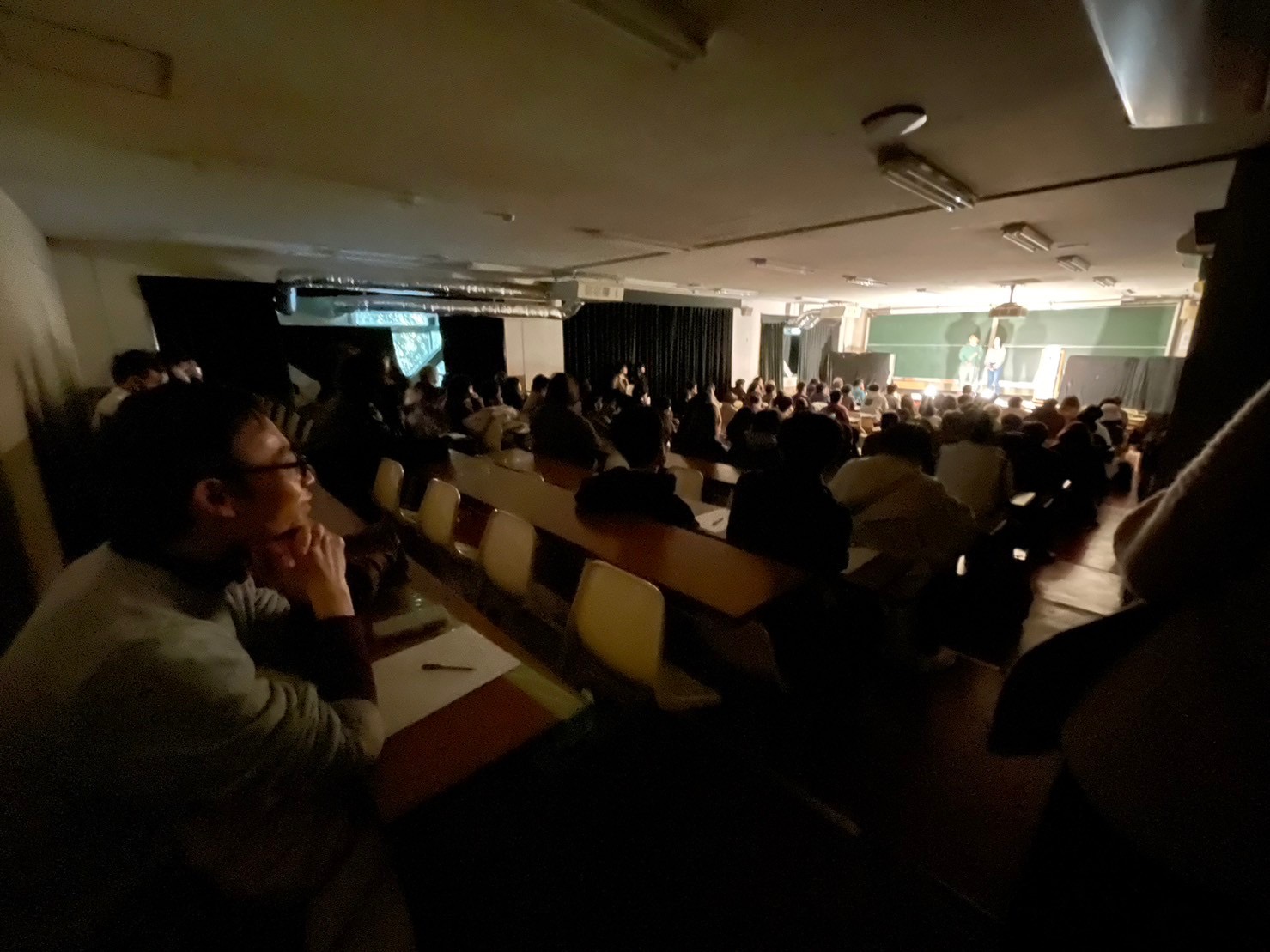 東京大学落語研究会は、漫才、コント、ピン、落語など、さまざまなジャンルのお笑いを扱う総合お笑いサークルです。普段は大学の教室や劇場を借りて、定期的にお笑いライブを開催しています。毎年駒場祭では3日間にわたって午前に落語のみの「若獅子落語会」を、午後にはお笑いメインの「駒場寄席」を行っており、今年も同様のスケジュールで開催する予定です。駒場祭ではたくさんのお客さんにご来場いただくため、普段のライブよりも多くの方々が楽しめるように工夫しております。例えば若獅子落語会は、いつもお笑いを主軸に活動している東大落研の公演の中で唯一、落語だけを満喫できる場です。そのため、落語にしか興味がない方でも存分に楽しめるかと思います。また、午後の駒場寄席では毎日5時間ほどぶっ続けでネタを披露しており、さらに入退場自由ですのでいつ来てもネタを観られます。ぜひ身構えることなく気軽にフラッと立ち寄ってみてください。良い意味で緊張感のない賑やかでゆるい雰囲気のライブなので、お笑いに詳しくない方こそ来ていただけると嬉しいです。部員一同、皆さんに面白いと思ってもらえるよう駒場祭当日に向けて精一杯準備してまいります。ぜひ当日722教室に来て、いっぱい笑ってください!