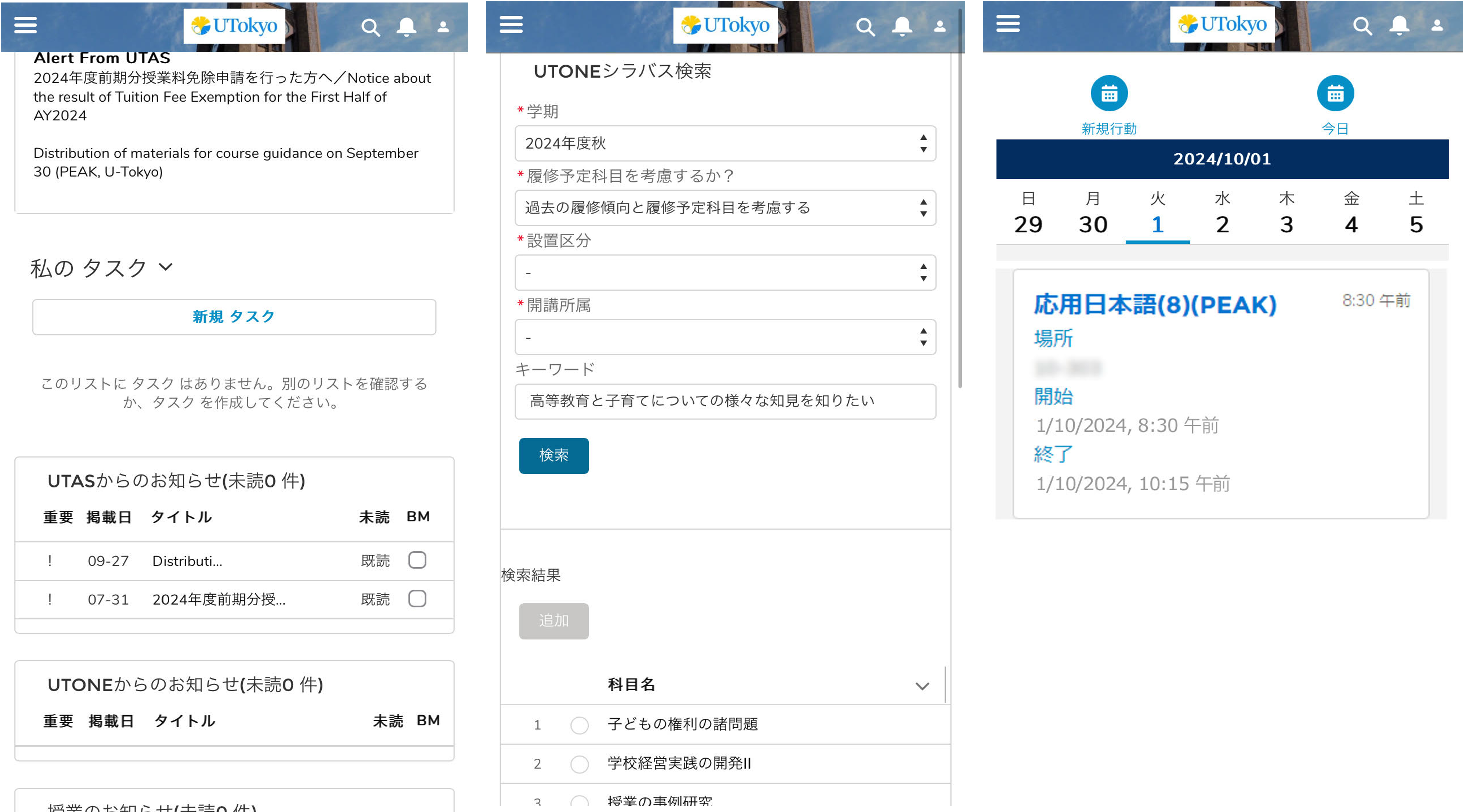 今回の授業料改定で得られる増収分を用いて、いろいろな質の高い学びのメニューを用意した上で、UTONEを用いて学修や諸活動の履歴・成果を手元に集約し、各自の進路や目標に応じた授業やプログラムを提案できるようにしたいと思っています(写真)。UTONEは、学生が大学での学びを主体的に設計できる環境を整えるための重要なツールだと位置付けています。これは世界中の大学で見られることです。授業料改定に伴う計画としてではなく、UTokyo Compass(藤井総長の就任後に示された、東大の基本方針)の目標の一つとして以前より掲げてきました。すでにPEAK(教養学部英語コース)で試験的に導入している段階です。UTONEは、より広い東大コミュニティーを構築するツールとしても活用できると期待しています。将来的には、卒業生用の機能も導入して、在学生と卒業生がつながれるプラットフォームとするつもりです。在学生が卒業生に話を聞けたり、卒業生が東大で学び直しをしたりする機会を提供できるかもしれません。
