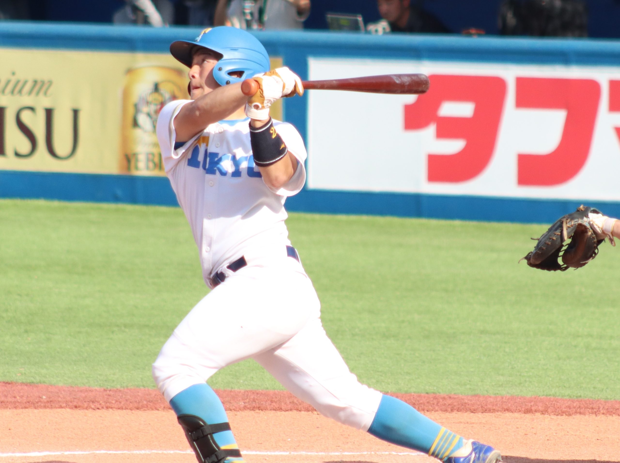 センターのポジションをがっちりと確保し規定打席(チームの試合数×3.1)にも到達した春季リーグからは一転、秋季リーグはわずか4打席の出場機会に限られ無安打に終わる不本意な結果に。それでも、途中出場した早大1回戦では左中間フェンス際の打球をウォーニングトラックまで追いかけてスライディングキャッチ。俊足と広い守備範囲を見せつけた。外野手の選手層は厚いが、決してその中で埋没する個性ではない。もがいた秋の経験を糧にレギュラーに返り咲き、来年は東大躍進の立役者になる。【眞】