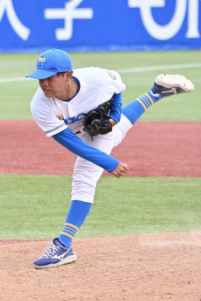 2回表にさらに江口が1点を失ったところで大久保監督がマウンドに送り込んだのは、秋季リーグ開幕前に「最も成長した」と評価した松本。監督の期待通り、圧巻の投球を見せた。威力ある直球に落ち球、時折混ぜるスローカーブのコンビネーションで明大打線を手玉に取る。高めの直球で差し込み、低めの変化球は明大打線がファウルにするのがやっと。1点こそ失いはしたが、4回1/3を投げて被安打3に抑えた。