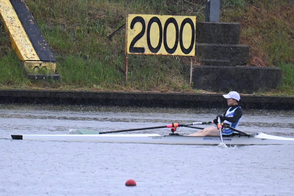 翌6日は女子シングルスカルC決勝から始まった。1レーンで出漕した「鈴蘭」は序盤3位とやや後手に回るも、粘り強く先頭に食らいつき中盤で差を縮める。1000メートル付近でトップの富山国際大学と並ぶと、1250メートルで逆転。その後は快走を見せ、後続を大きく突き放して1着でフィニッシュした。