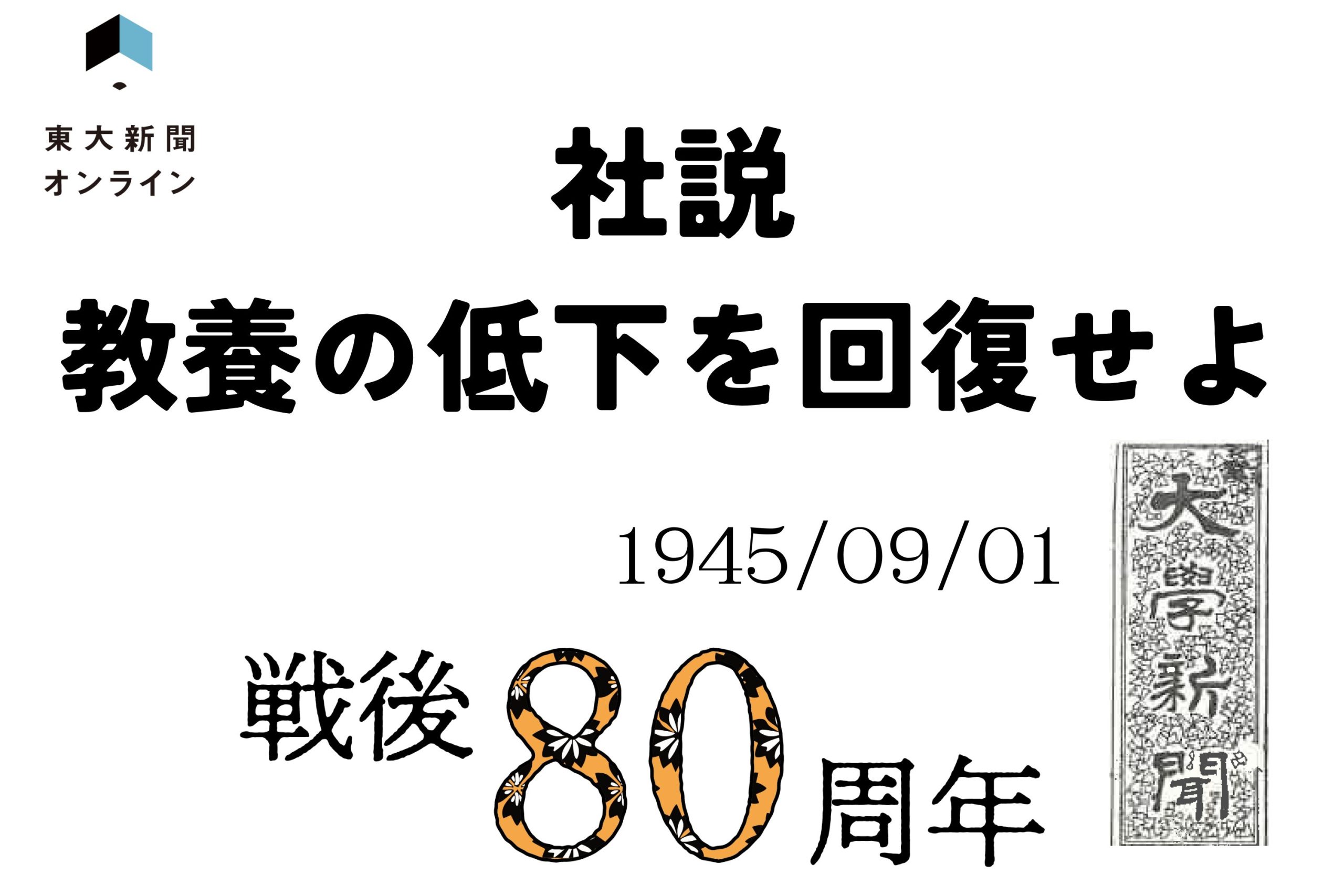 今回は1945年9月1日発行の「大學新聞」より社説「教養の低下を回復せよ」を転載する。終戦直後の検閲なき期間の本記事をして、「当時」について考えるきっかけにしてほしい。(構成・溝口慶、◯は印刷不良により判読できなかった文字、その他改行や句読点など一部改変)