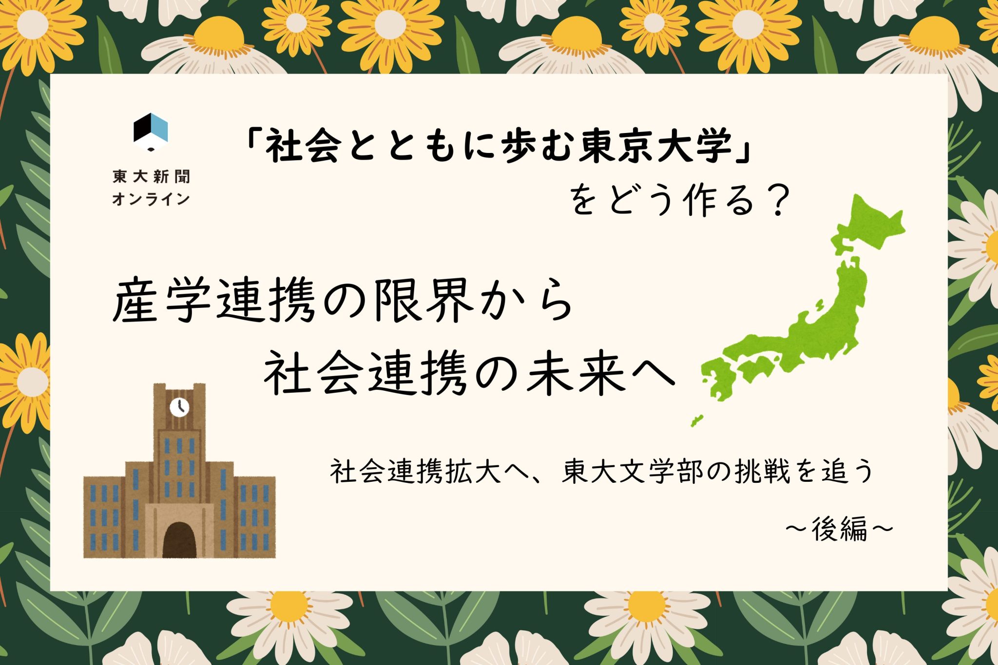 2021年、東大大学院人文社会系研究科・文学部は、和歌山県新宮市と連携協定を締結するなど、社会連携の一環として地方自治体で人文知を生かす動きが始まっている。理系分野での産学連携が進む中で、人文系分野での社会連携はどのよ … 続きを読む 産学連携の限界から社会連携の未来へ【後編】秋山聰教授インタビュ-