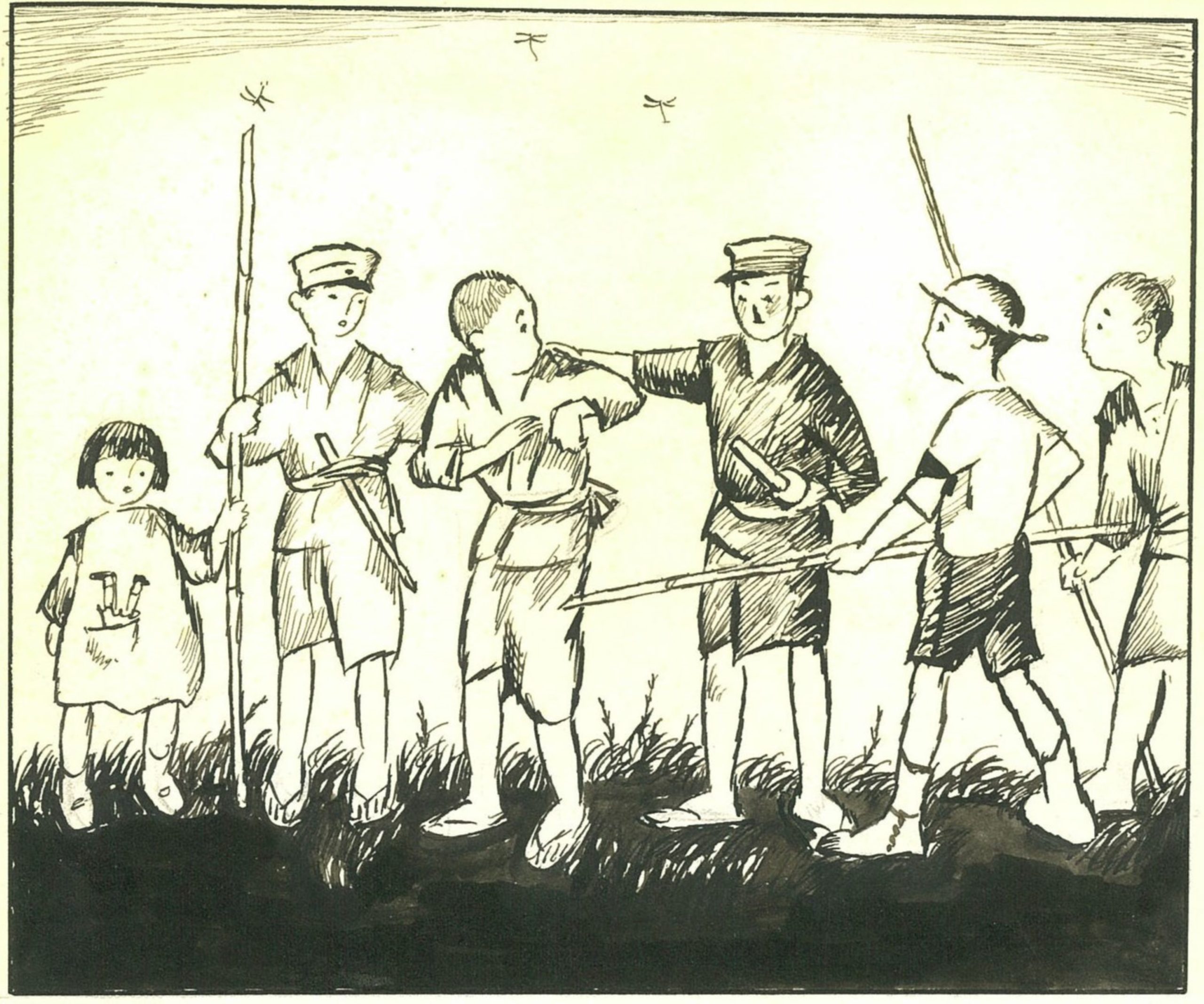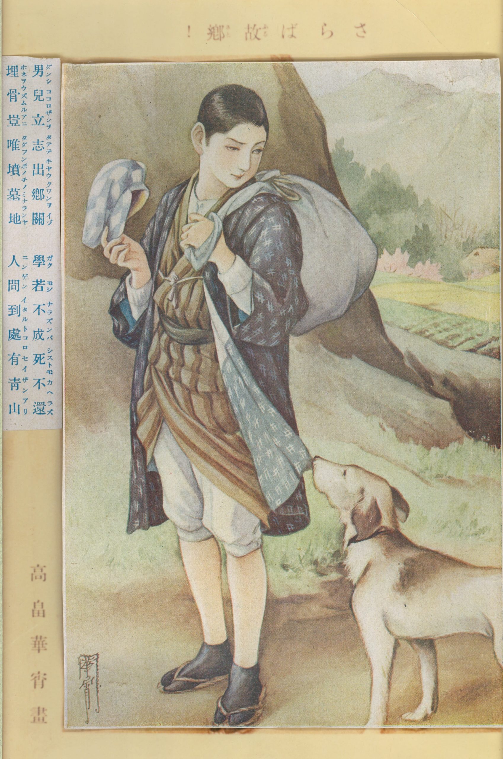 華宵の特異性は、少年雑誌でも少女雑誌でも活躍したことだと内田さんは語る。「華宵の絵は『少年の中に少女が、少女の中に少年がいる 』と称されたように、画風の特徴として、男子の顔も女子の顔も同じ顔つきだということが挙げられます」。当時の学校は男女別学であったため、異性愛に向かう前の段階として、素敵な同性に憧れを抱く文化があったという。特に女子同士の関係は「sister」の頭文字から「エス」 と言われていた。華宵の絵の中性的な魅力は、多感なティーンエイジャーにグサリと刺さったのだろう。「華宵の絵は単に『美しい』『かっこいい』というだけではなく、さらに先の気持ちを喚起させますね。妖しい性的な魅力が、若い世代の心に大きな影響を与えたのでしょう」。鹿野も、華宵の絵に心をつかまれた少年の1 人であった。29年に『日本少年』に掲載された華宵の巻頭イラスト「さらば故郷!」に心を奪われた少年は、36 年の時を超え、憧れの華宵に出会ったのだ。